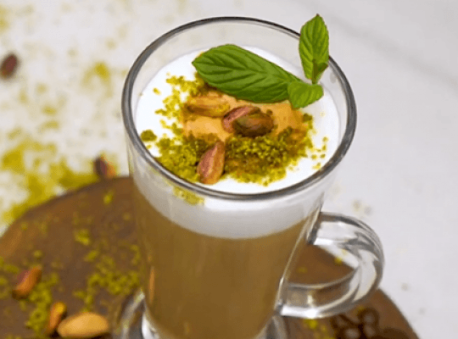 7Antep fıstıklı Latté’niz hazır. Afiyet olsun.